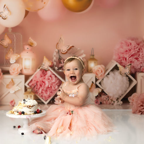 Cake smash photography is more than just cute pictures—it's a way to freeze this precious moment in time. Your baby is turning one, and their big personality is starting to shine! Whether they’re curious, shy, full of giggles, or ready to dive right into the frosting, I tailor each session to fit your little one’s unique vibe. We’ll start with simple portraits (often called “pre-smash” shots), then move into the messy cake fun, and finish off with an optional bubble bath cleanup that’s always a hit.